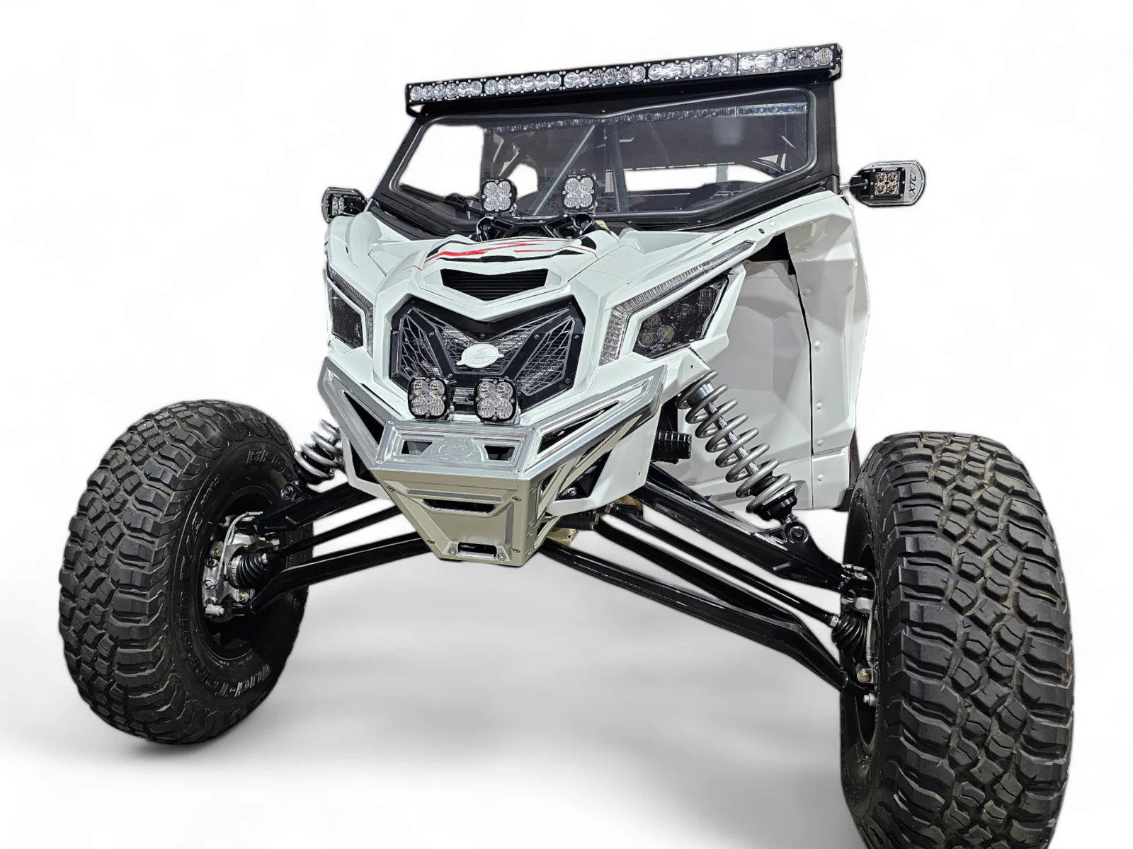 Our lightweight machined billet aluminum 2017 to current Can-Am X3 Maverick Winch Front Bumper features provisions for accessories and offers your ride improved protection and styling. Central to our bumper is a hidden steel winch mount that attaches to the frame for secure recovery options. It includes 2 mounting options for cube lights or round lights and channels for clean wire management. Constructed from lightweight billet aluminum, our Can-Am X3 Maverick Front Bumper is anodized black and features a fully bolt-on installation.